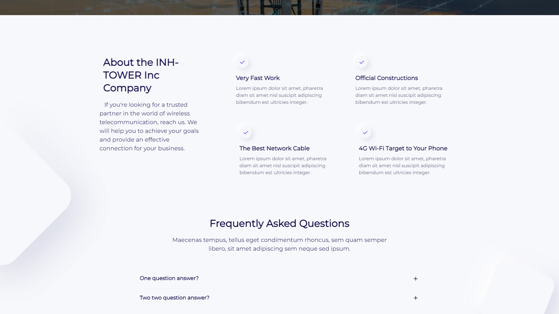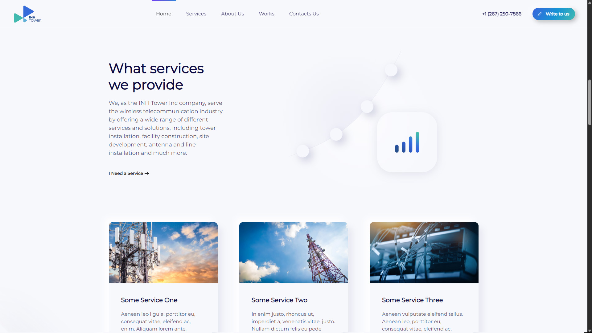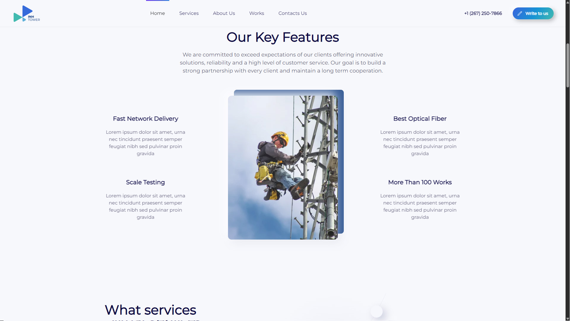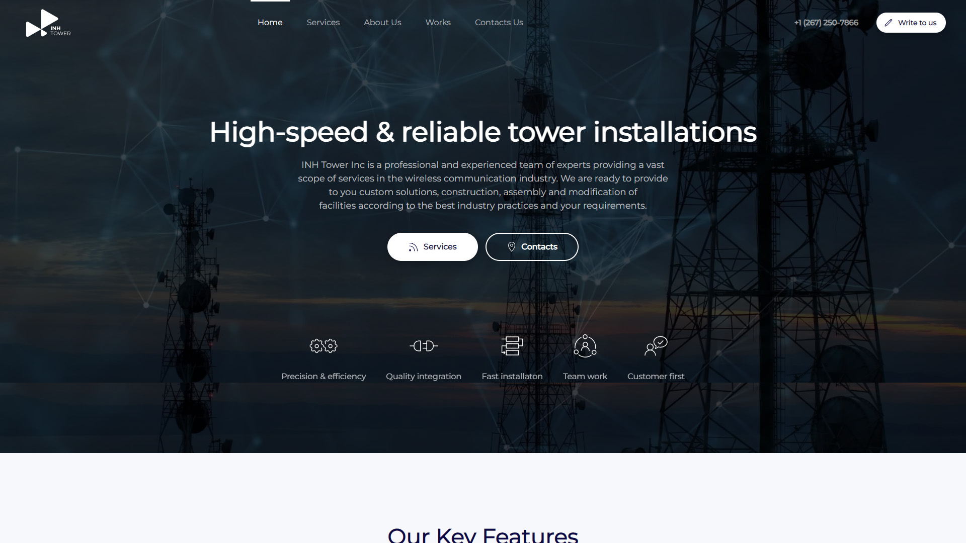 The project included development of the turn-key one-page website showing the services offered for wireless telecommunications installation as well as work examples. We were asked to wrap it in a beautiful and themed design adapted to any device.